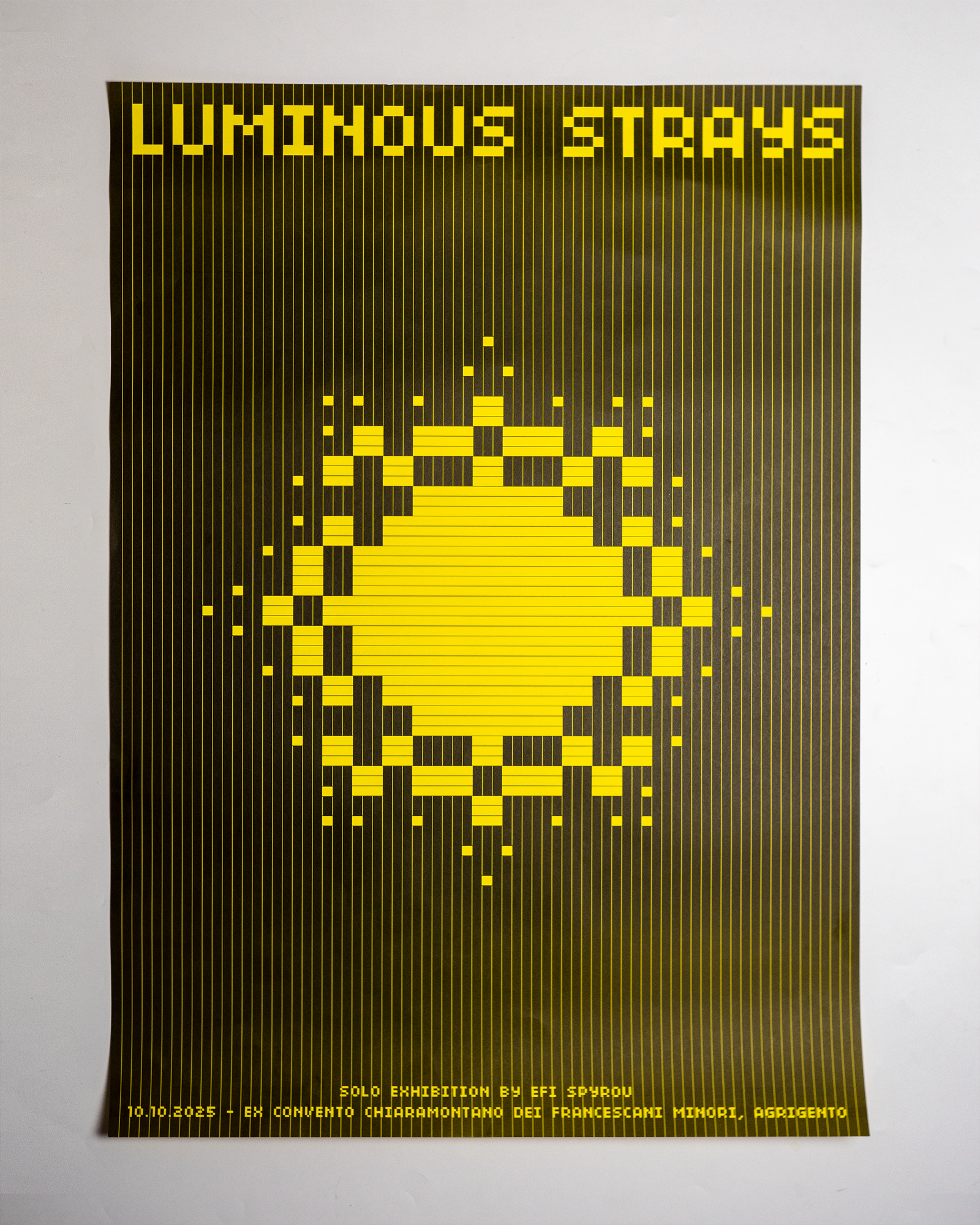 Poster design and typography for “Luminous Strays” and exhibition by Efi Spyrou.