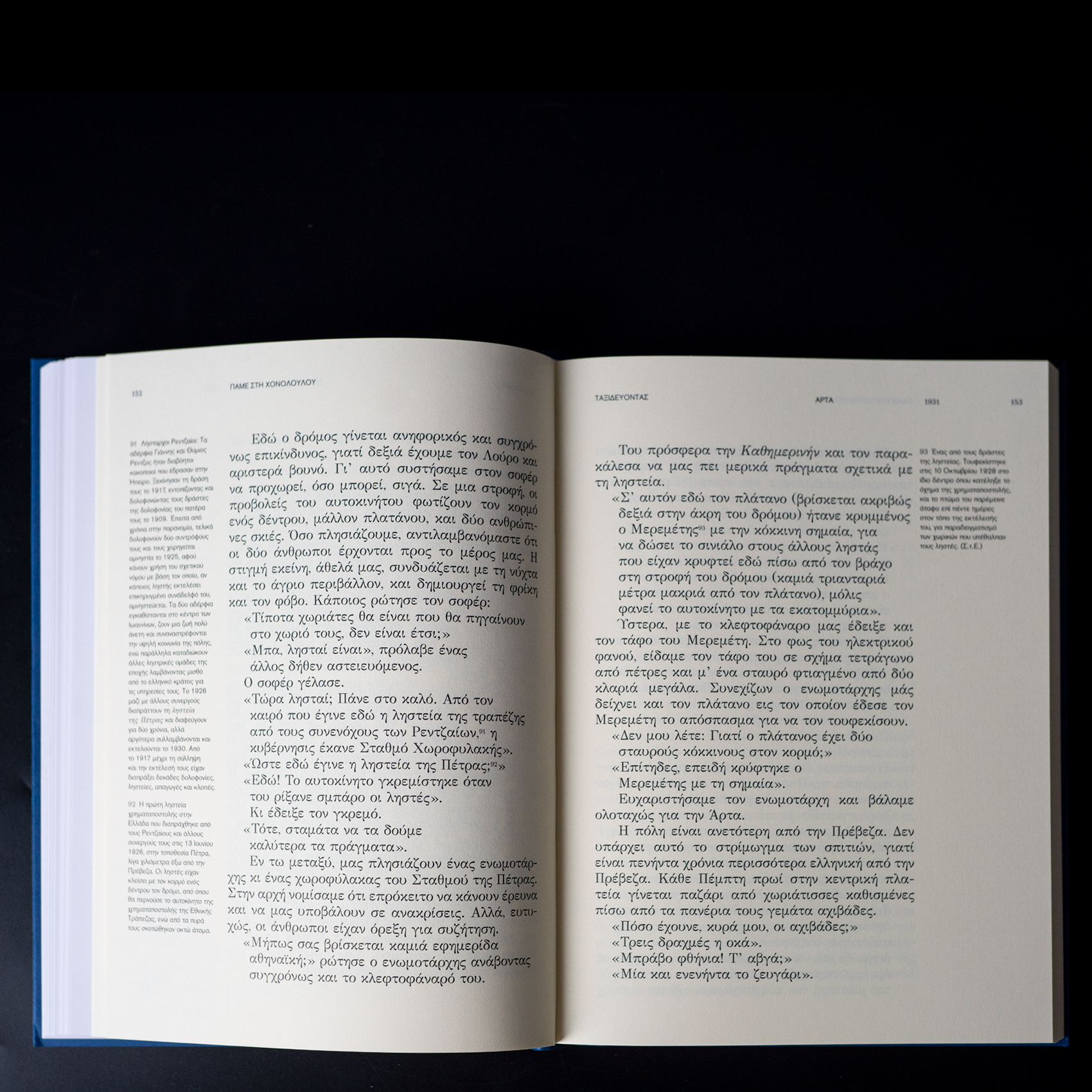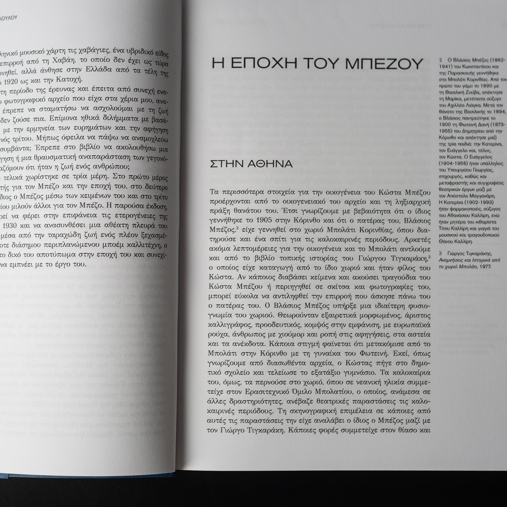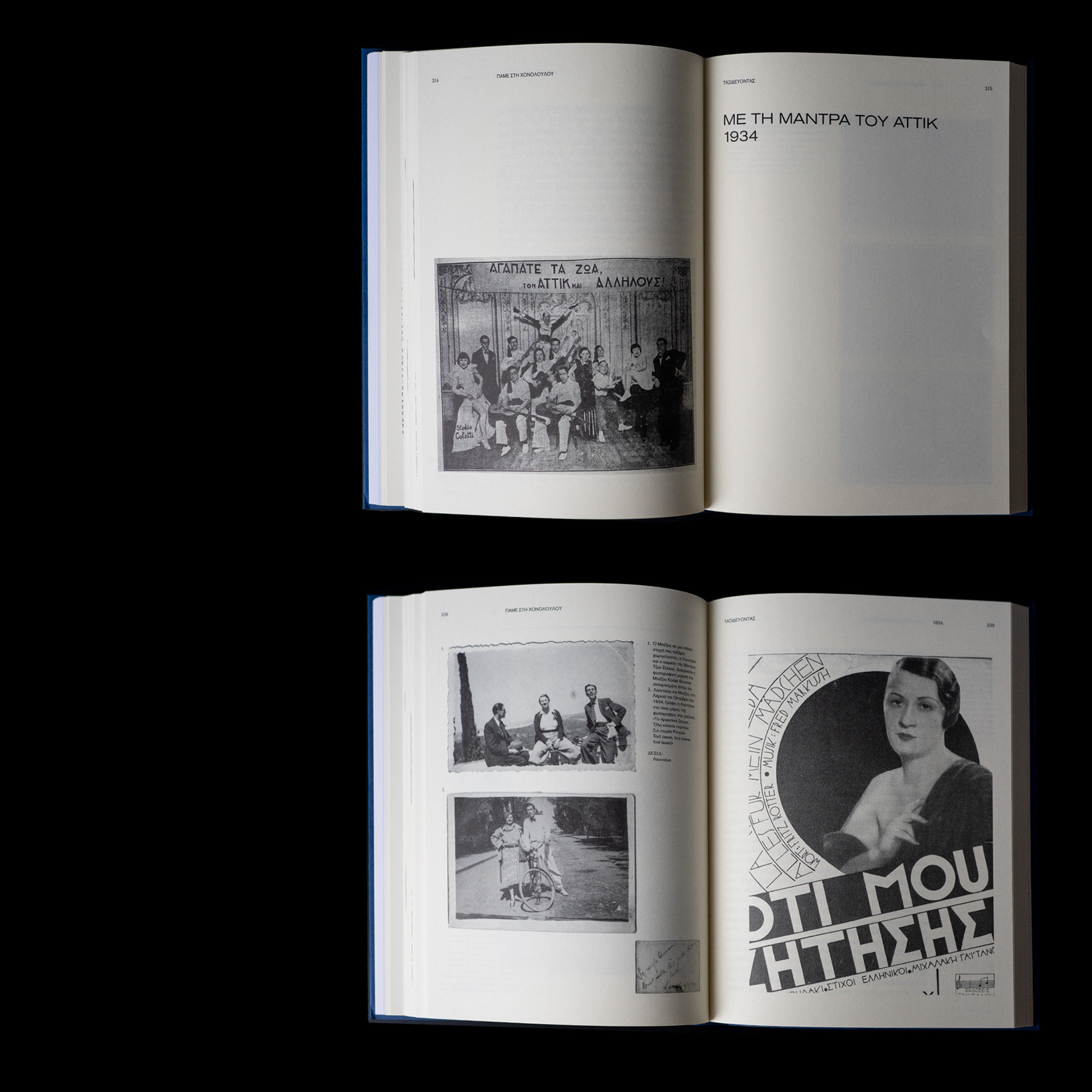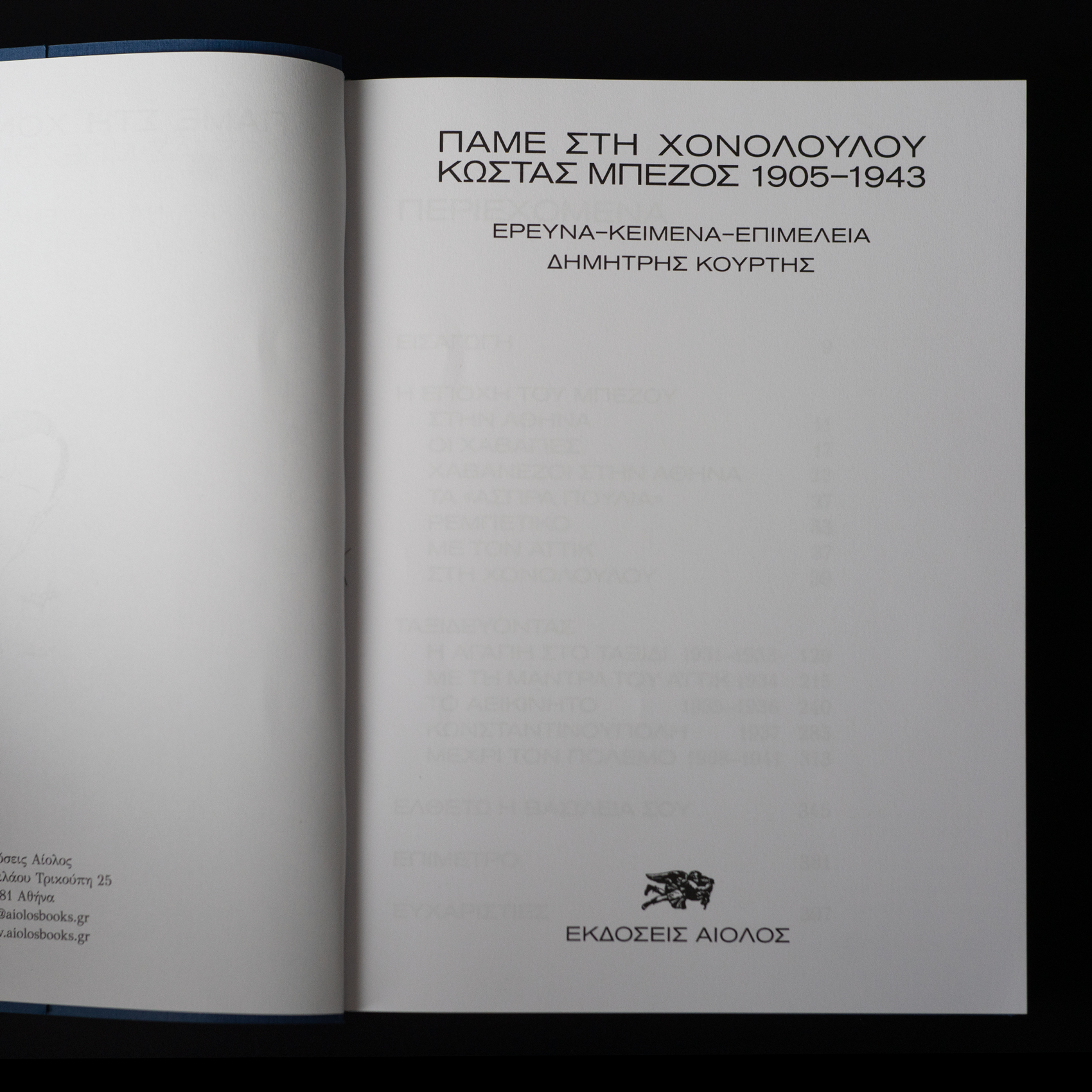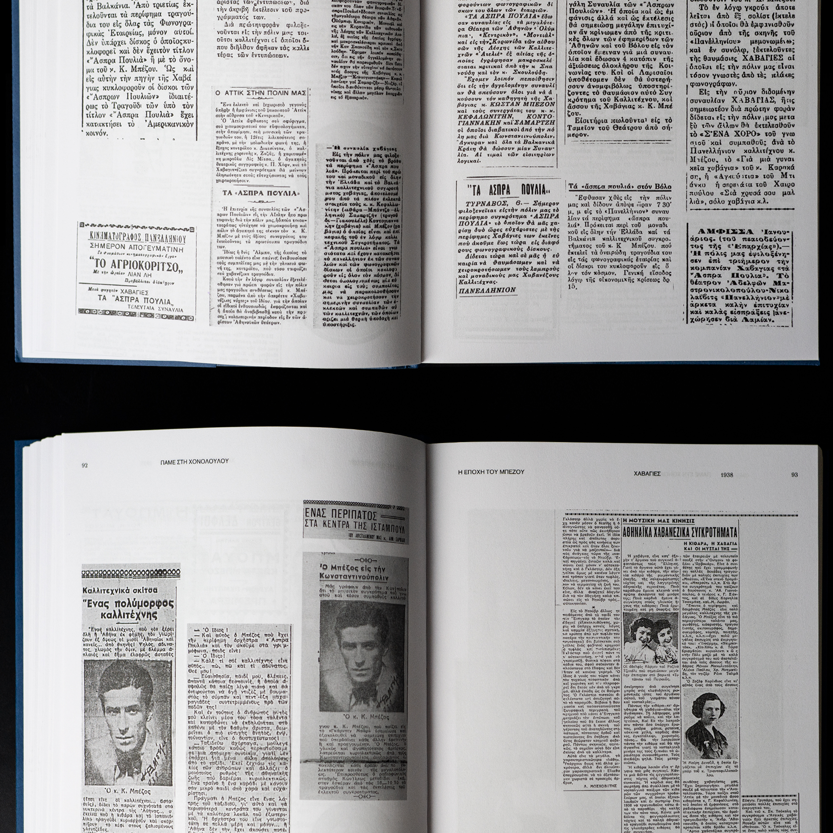 In Hawaiian, honolulu means “protected bay.” Kostas Bezos (1905-1943), a cartoonist and musician, sought to realize in dreamy artificial paradises all the real journeys he had not had the chance to make. But what was Honolulu for him? A cove of his imagination or a place he did not manage to go? Hawaiian music, exotic guitars, sketches, midnight cabaret, tours in Greece, the Balkans, Egypt and Turkey are intertwined in a single narrative, capturing the portrait of an era and creating a different story from the one recorded by the official history of Greece between the wars. The typographic orchestration navigates between narration and archive be using a column structure to slide scales and times giving a reading rhythm.