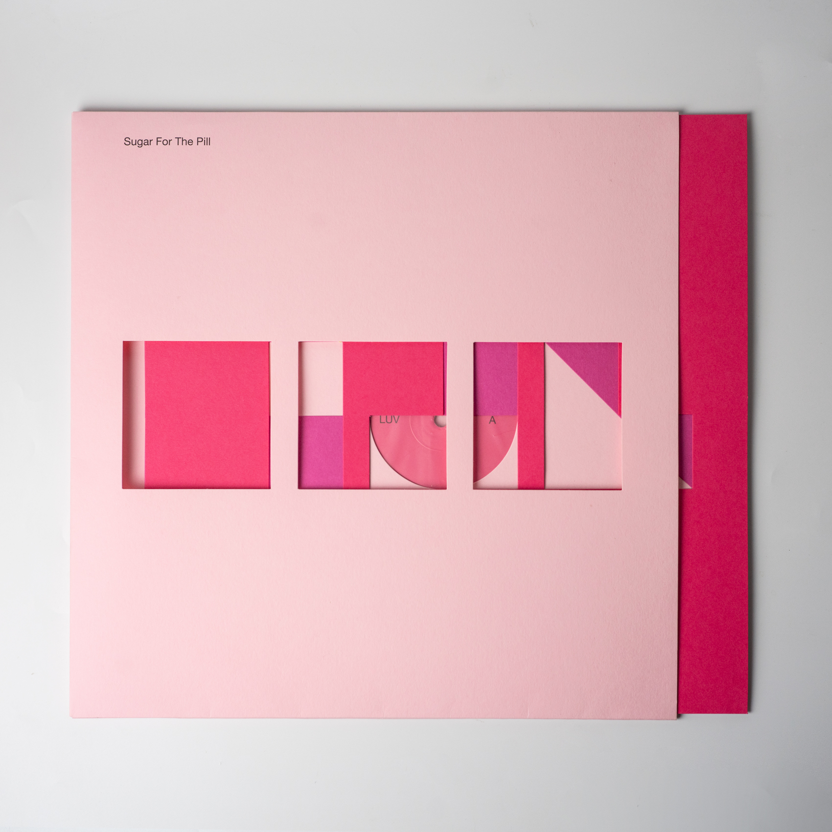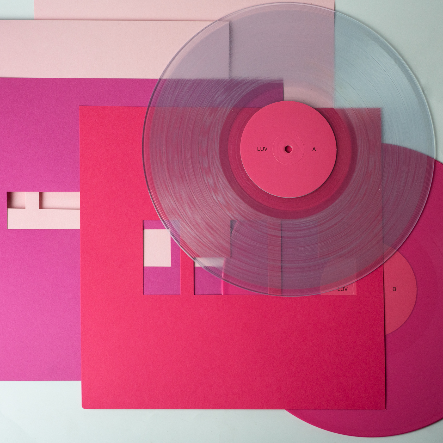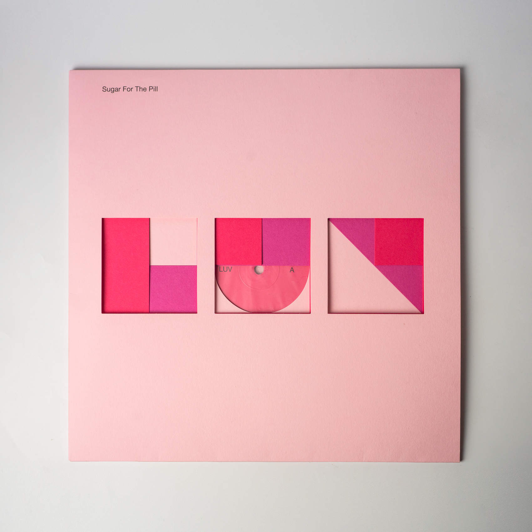 LUV is the second album by Sugar for the Pill and the second typical exercise on their enclosure of sound. It consists entirely of layers of pink Colorplan papers. Through a series of diecuts based on basic geometric forms—circle, square and triangle—the word LUV is implied from the interplay of seen and unseen these layers. The record is pressed in pink or transparent vinyl with a matching label, that is a part of the object itself, being visible throught the diecuts array. Between Marusankakushikaku (○△□), Paul Renner’s geometric discipline, LUV reflects on how form, color, and emptiness and coexistence. Komorebi among the cherry blossoms.